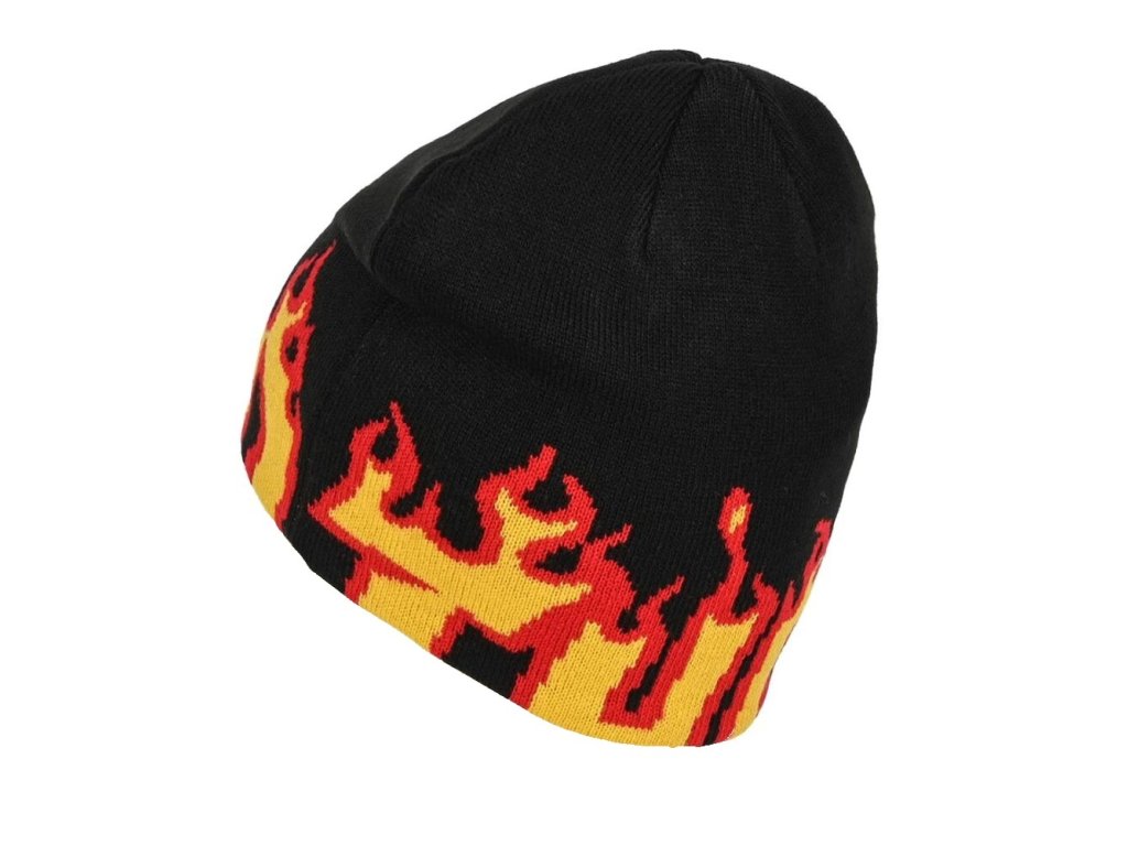 Pružný přiléhající kulich tkaný z akrylu. Logo "Flame" je po celém obvodu čepice.