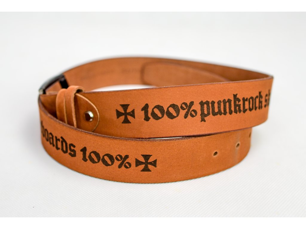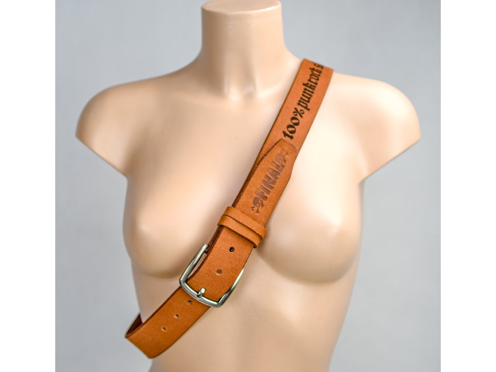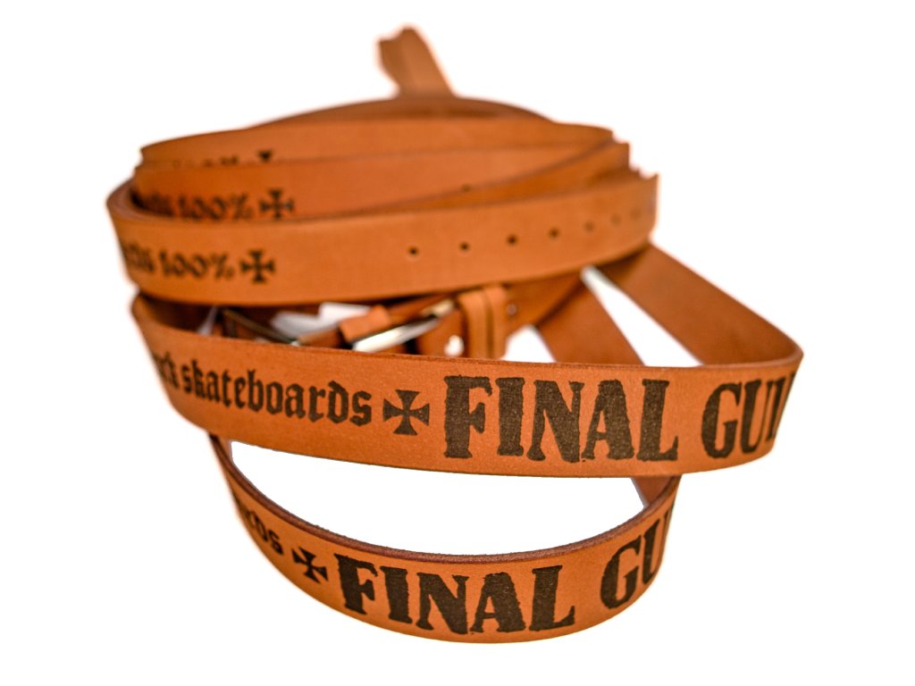 Opasek FINAL "FINAL GUILD" kožený, světle hnědý, laser design, vyměnitelná přezka.