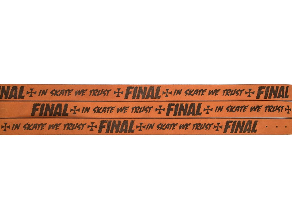 Opasek FINAL "TRUST" kožený, světle hnědý, laser design, vyměnitelná přezka.