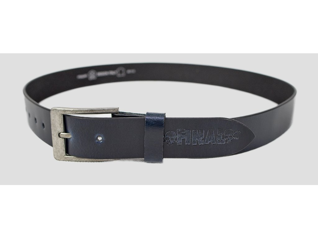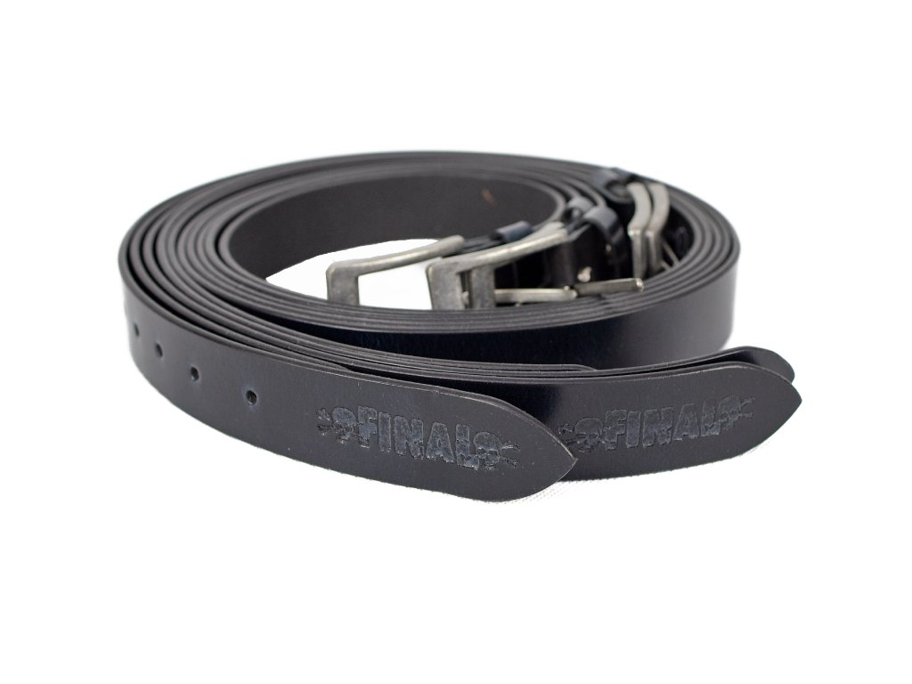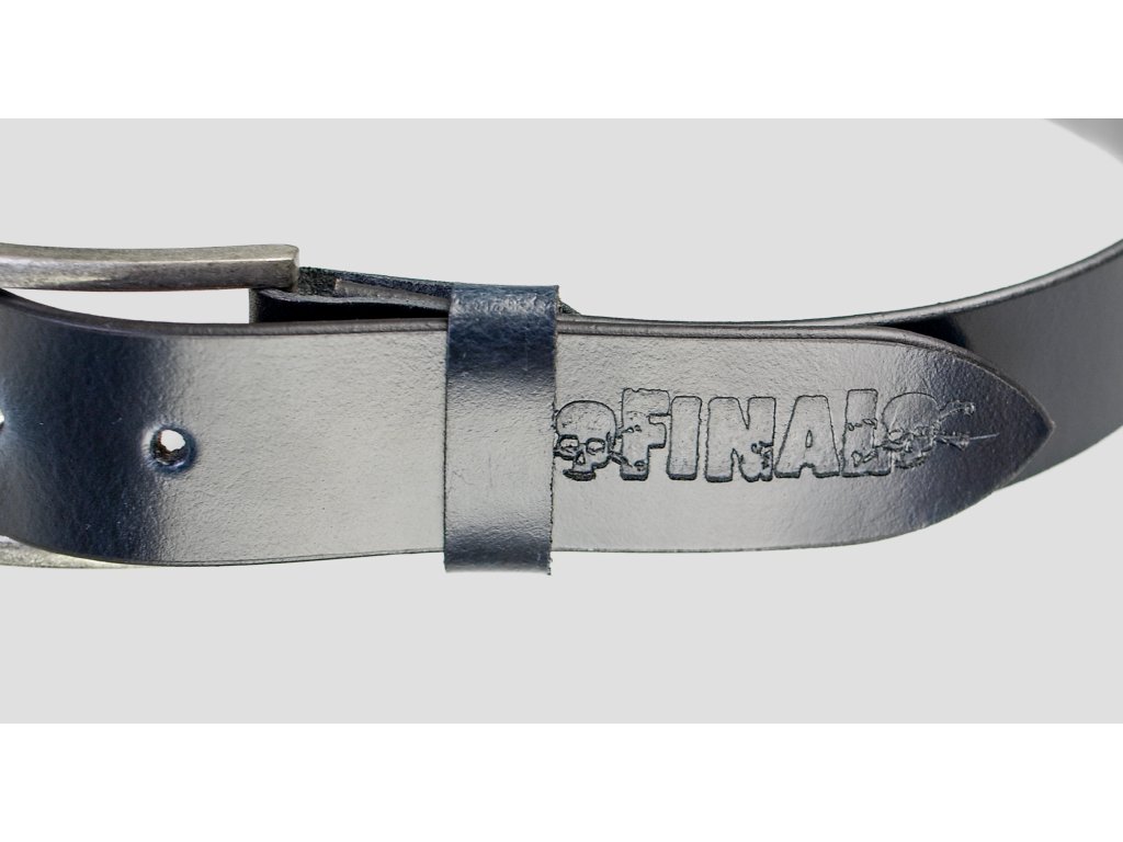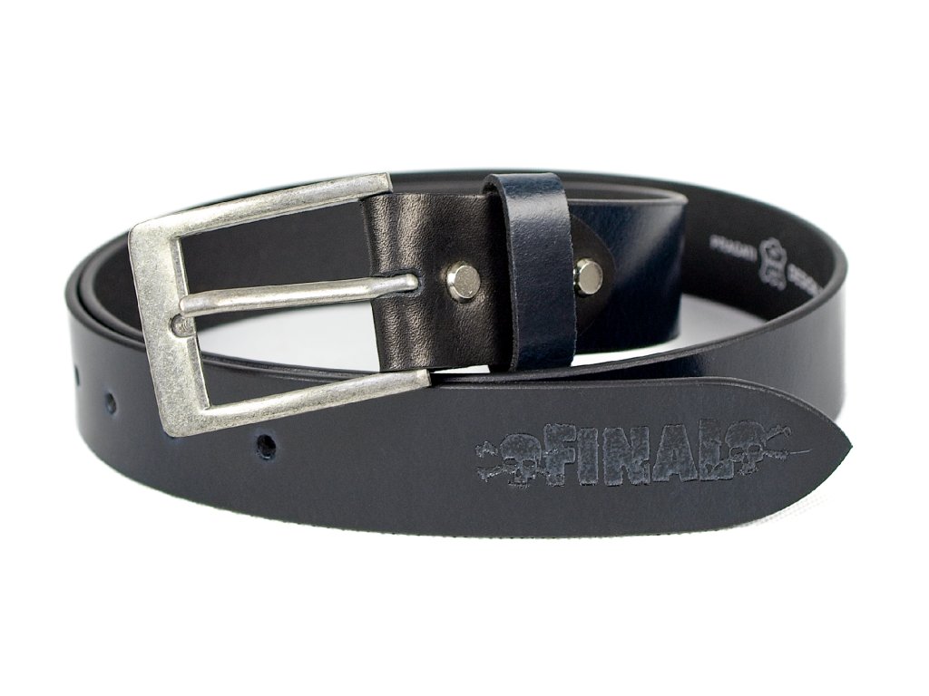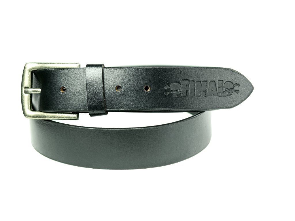 Opasek FINAL kožený, černý, ražené logo na konci.