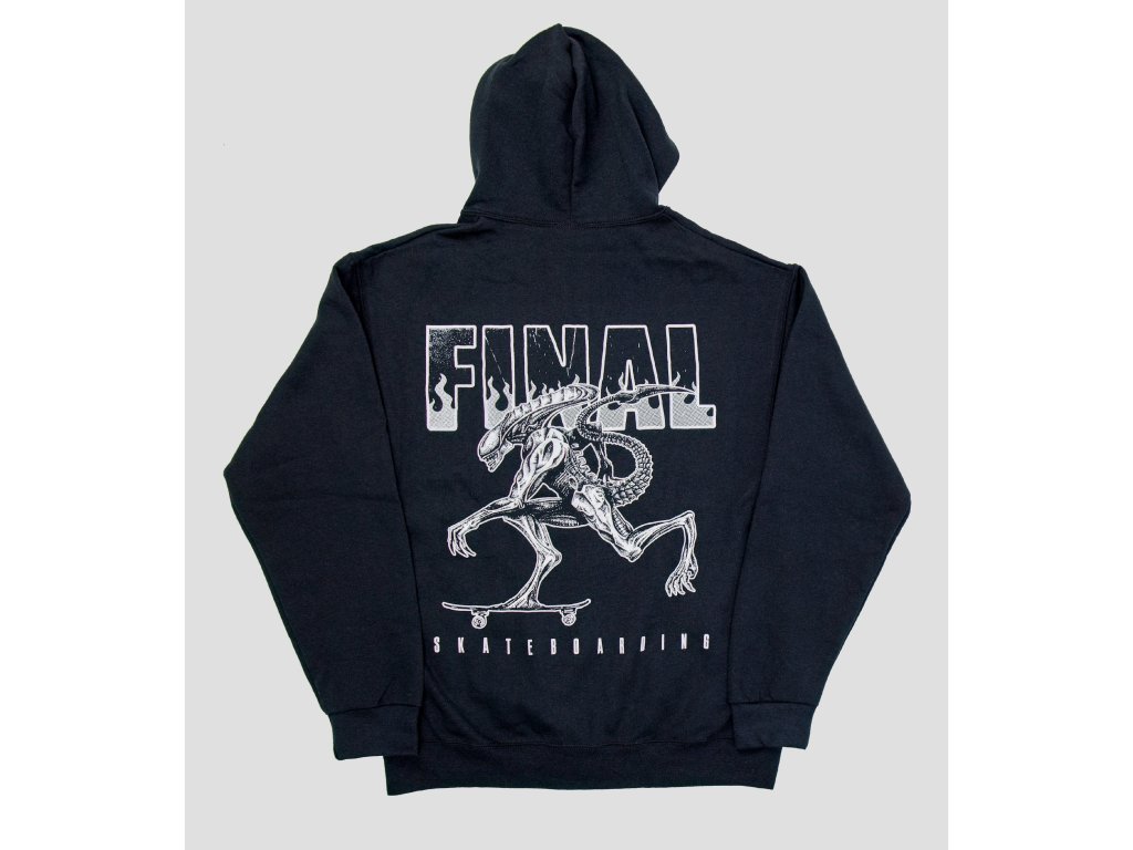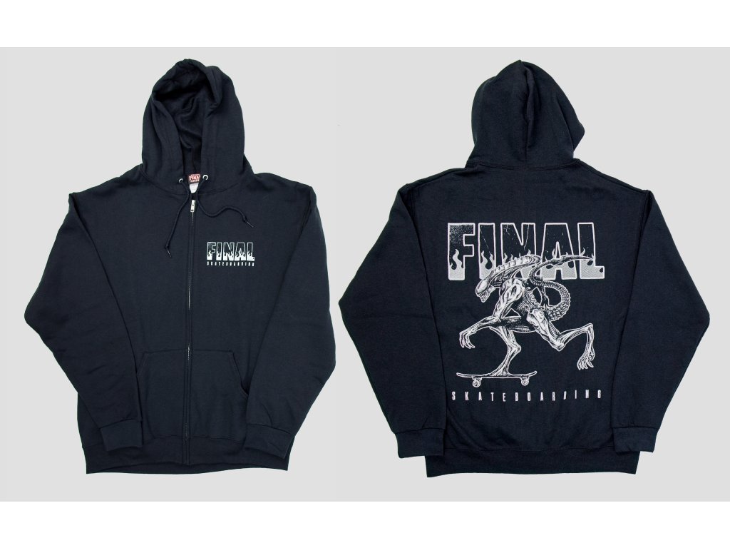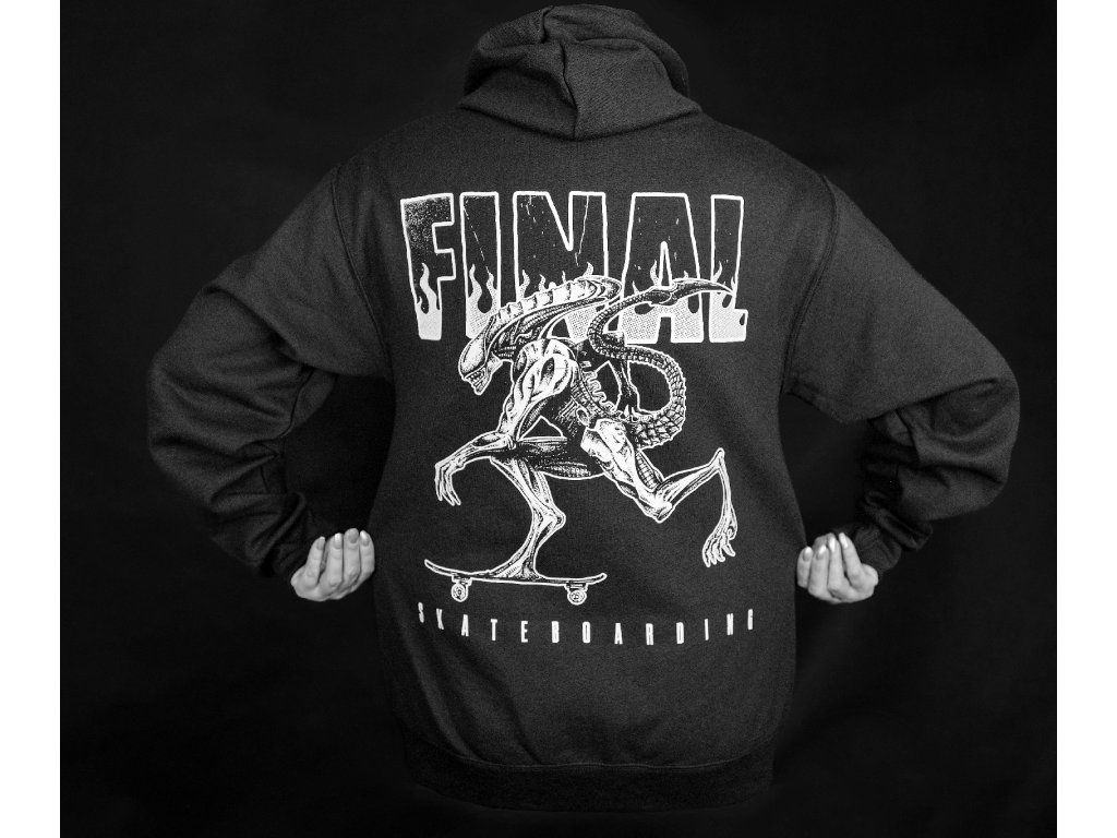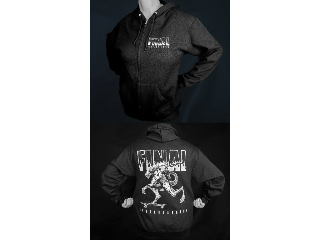 Pánská mikina, kapuca zip FINAL "ALIEN" černá, bílý tisk