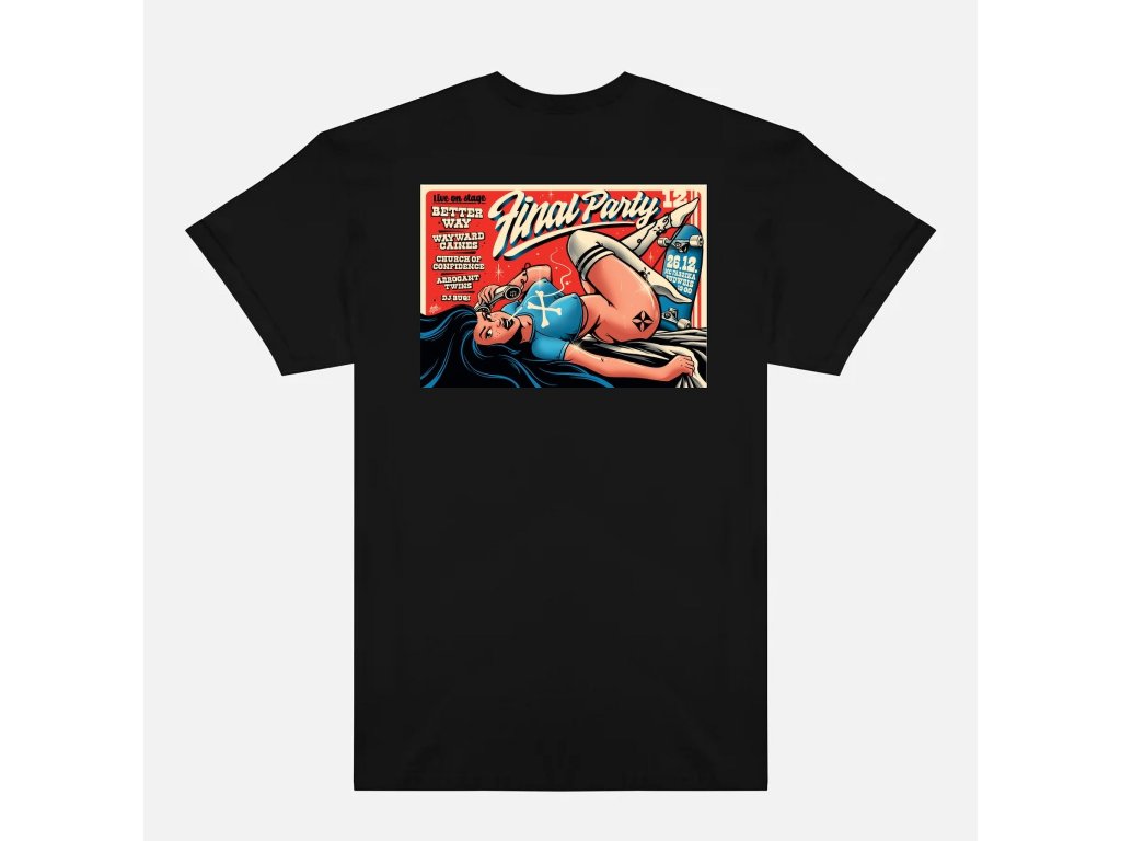 Jde o velmi malé množství triček s designem plakátu Final party č.12 z posledního pátku roku 2025.
